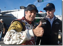 As the race wound down, deflated were various balloons of hope of those expecting all heck to break loose had only Ozz Negri’s (at far left with John Pew) No. 60 Crown Royal Ford-Riley DP somehow closed completely on Pruett’s No. 01 TELMEX BMW-Riley. (BTW: should the reader think the preceding unwieldy, try “Oswaldo Negri, Junior’s Michael Shank Racing No. 60 Crown Royal Extra Rare XR Roush Yates Engines Riley Technologies Mk XXII Daytona Prototype with John Pew”)